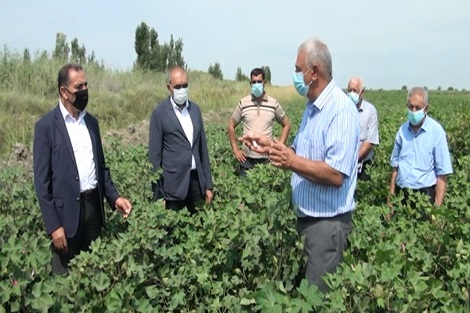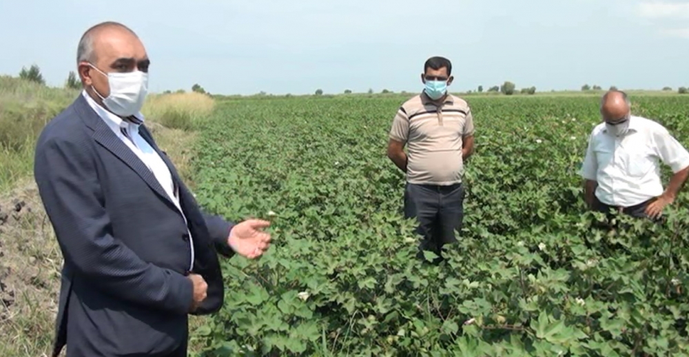 Sabirabadlı fermer Əfras Əsgərovun pambıq sahəsində yeni becərmə texnologiyasına baxış keçirilib. Çiyid səpininin qoşa cərgə əsasında aparılmasına əsaslanan texnologiyada bitkinin bioloji məhsuldarlığı təyin edilib və səmərəliliyi qiymətləndirilib.