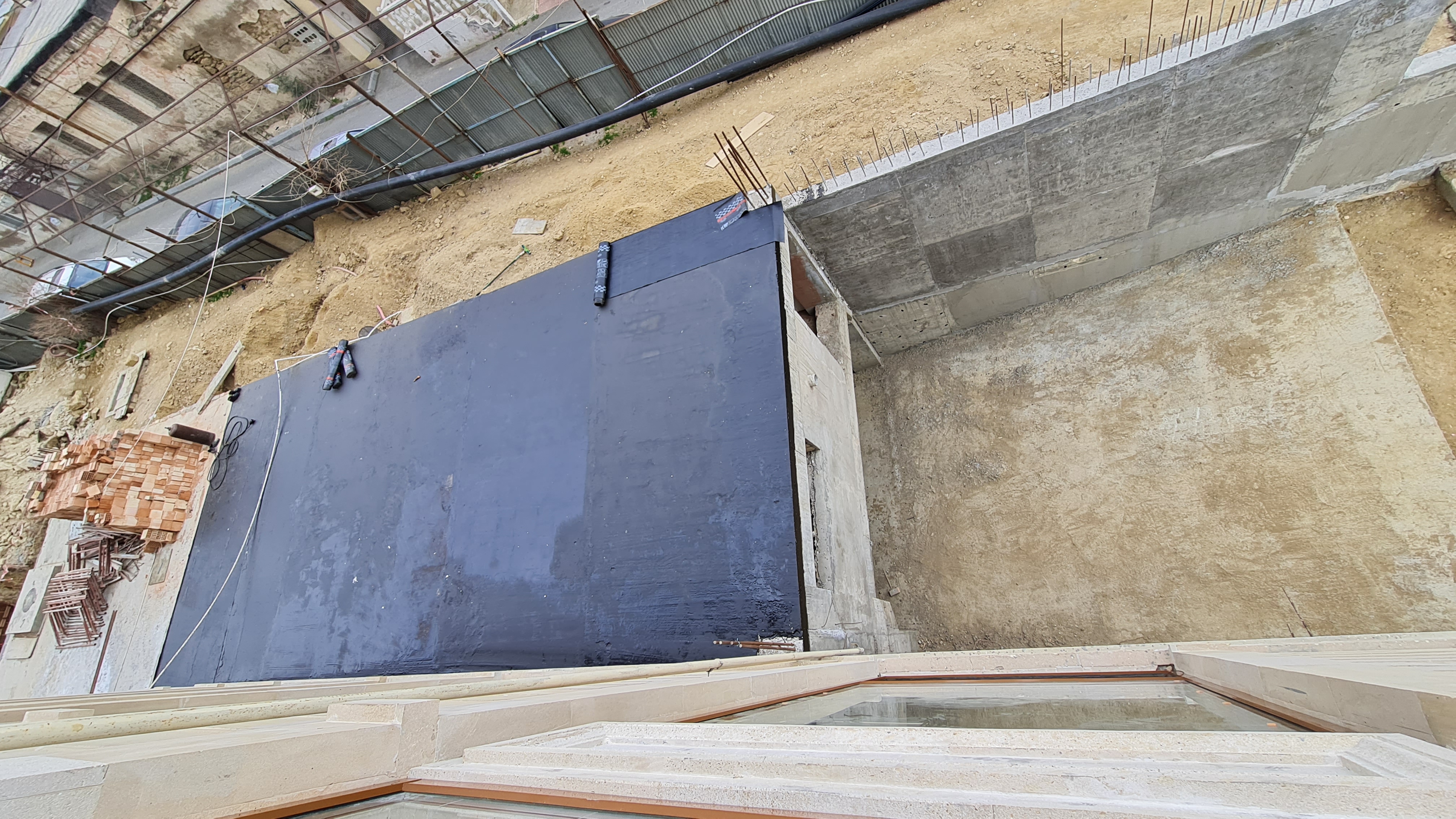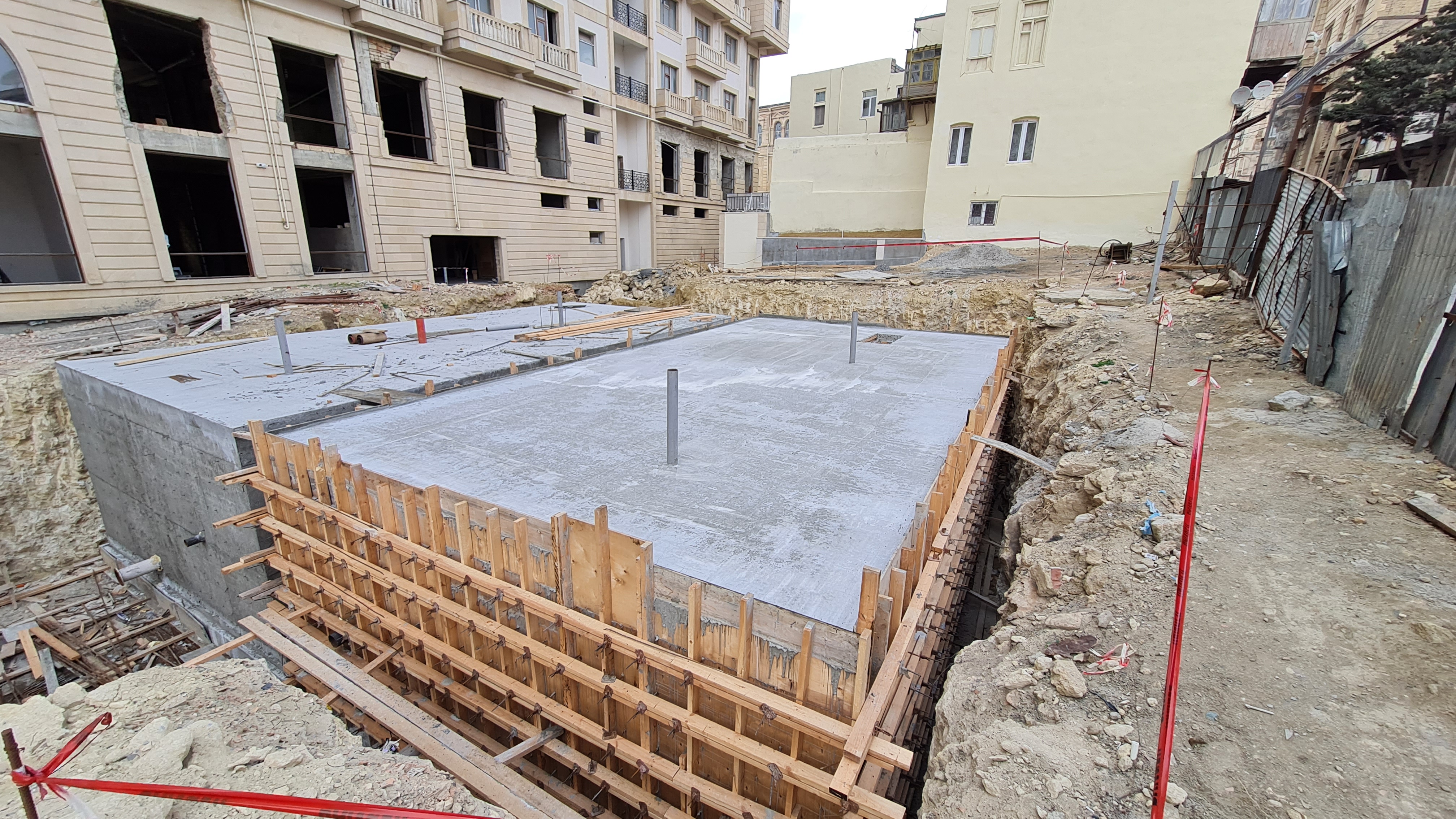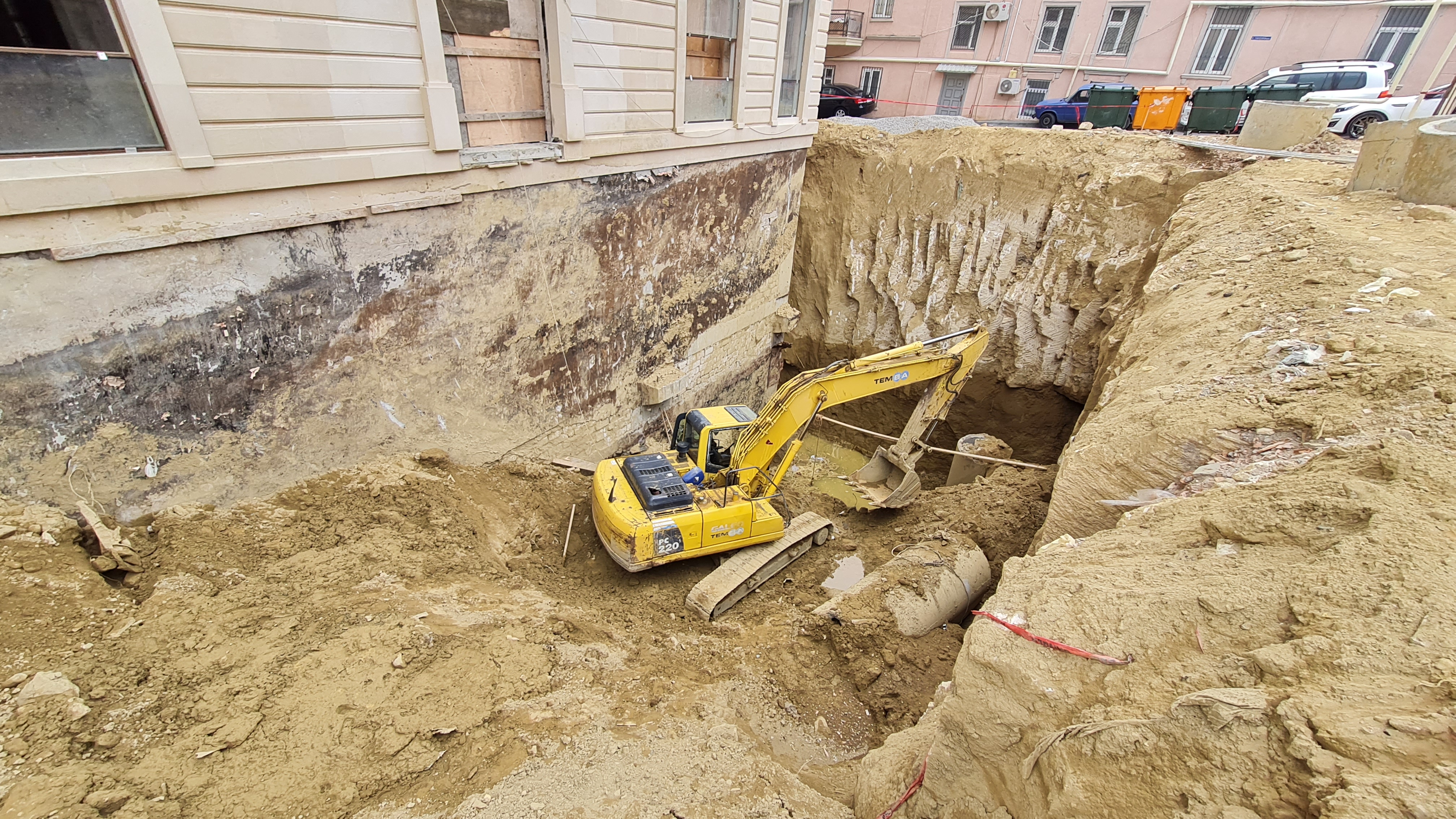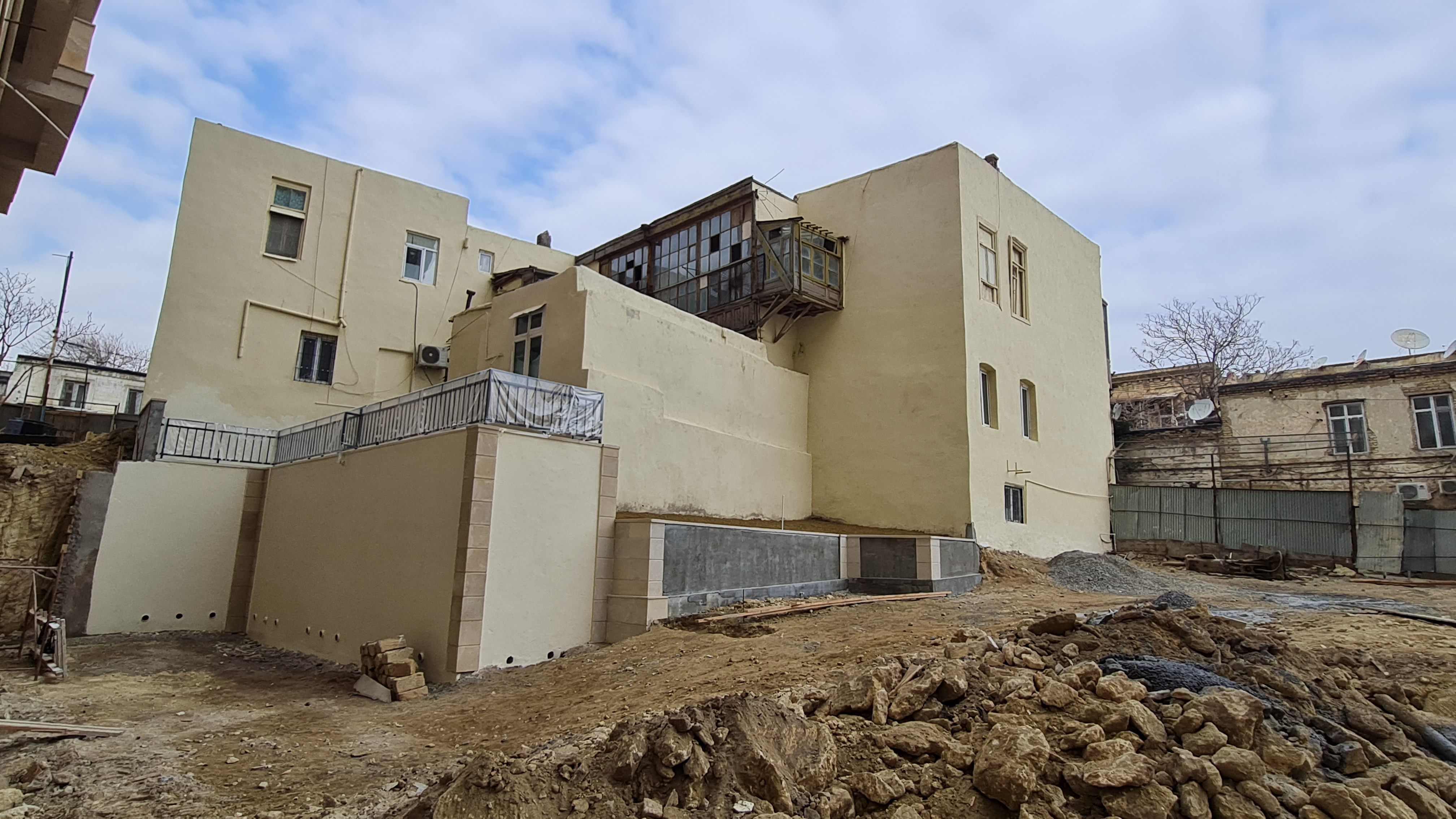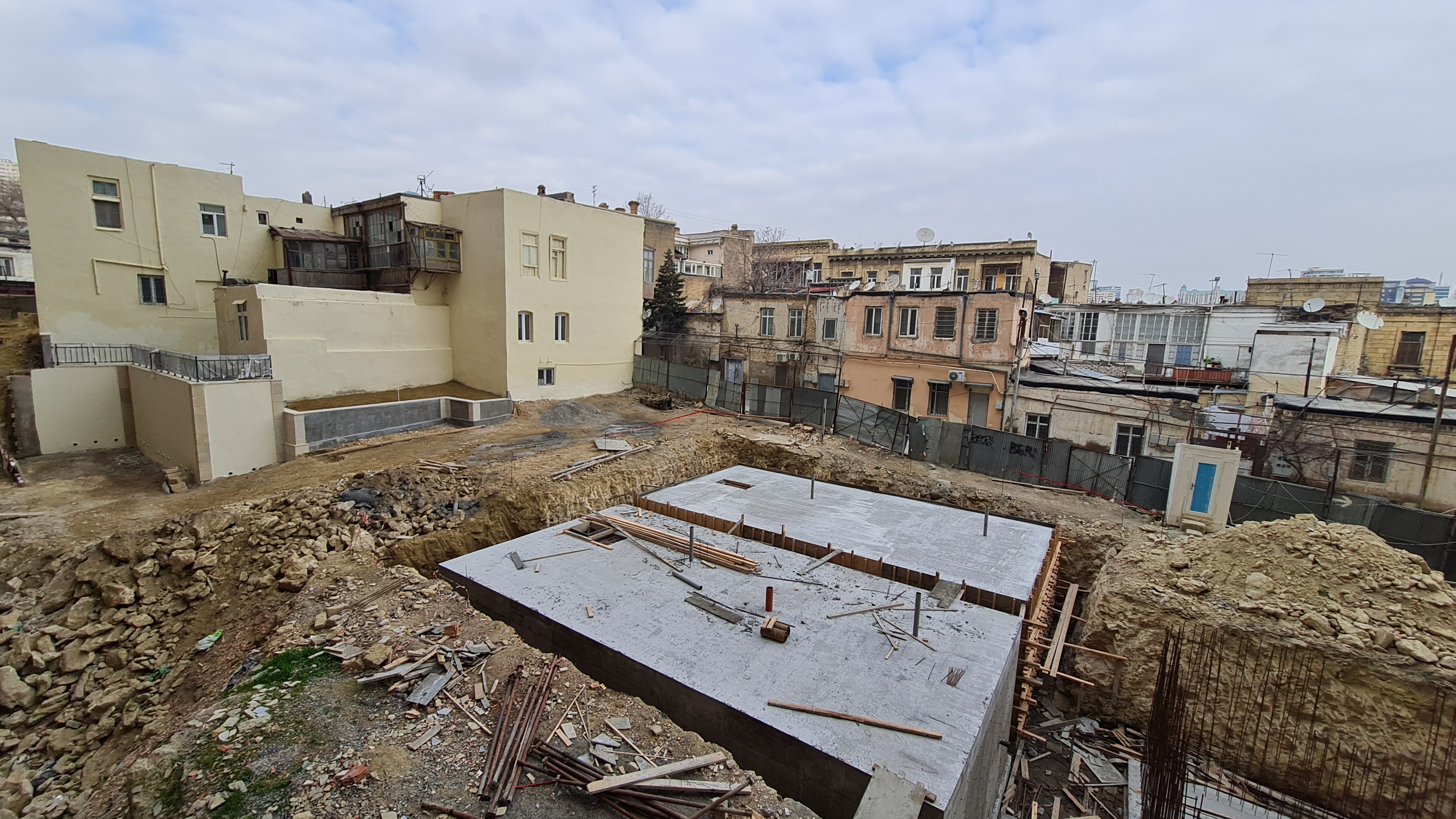 Bundan əlavə Zərgərpalan küçəsi səmtində binanın -8.35 səviyyəsinə giriş-çıxışın təmin olunması məqsədilə yaradılan “çökəklik”dən yağış sularının kənarlaşdırılması üçün bina boyu açıq drenaj sisteminin inşasına başlanılmışdır. Bunun üçün polimer kompozit armaturdan istifadə olunmaqla polimer-beton hazırlıq qatı qurulmuşdur.