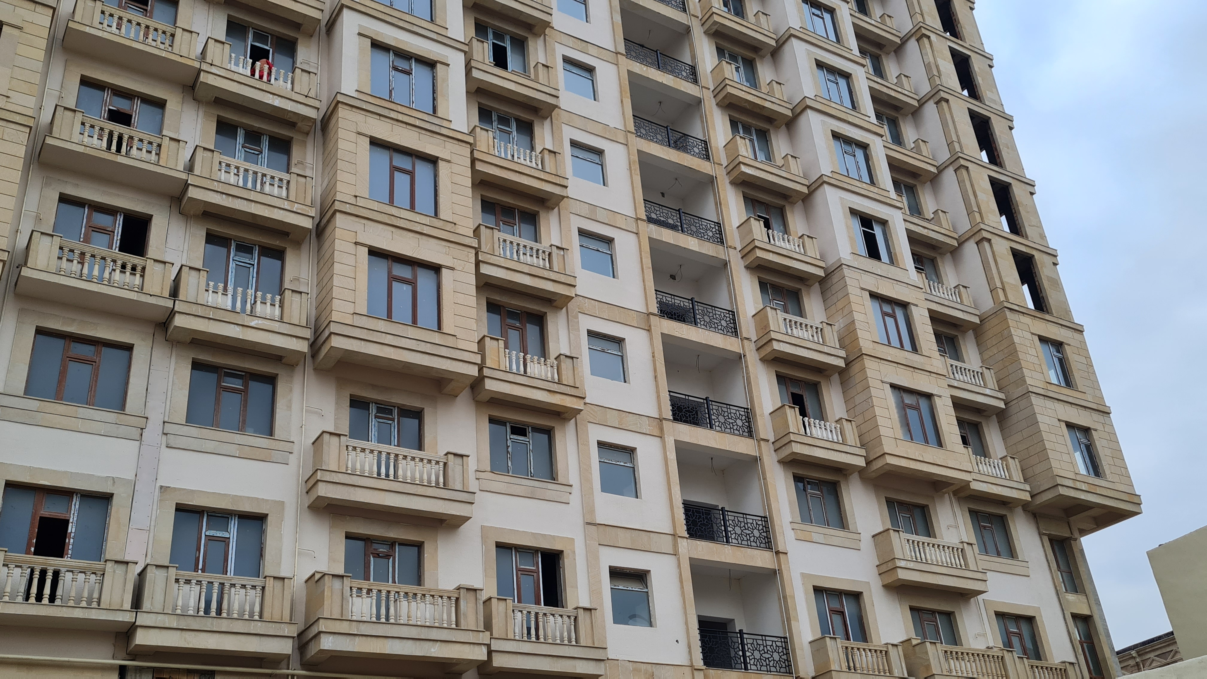 1-ci blokun eyvanlarında “ağlay” daşından məhəccərlərin quraşdırılması işləri də davam etdirilir. Artıq 2,3,4 və 5-ci mərtəbələrin bütün eyvanlarının məhəccərləri quraşdırılmış, 6-cı mərtəbədə bu işlər davam etdirilir.