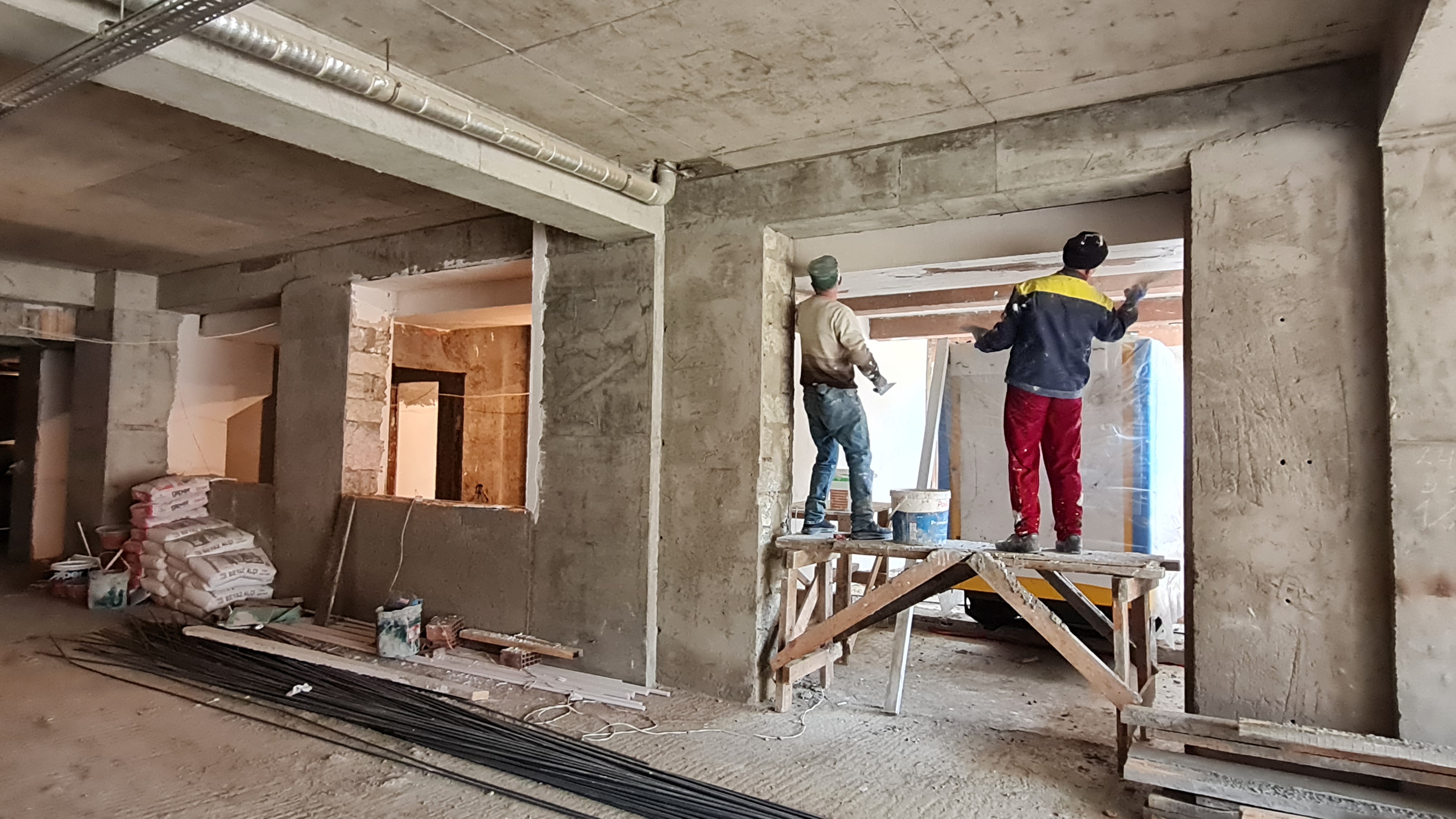 -4.95 səviyyəsinə qalxıb-enmək üçün nəzərdə tutulan 2 ədəd lentvari pilləkəndən birinin əsası qoyulmuş və polimer-beton hazırlıq qatı yerinə yetirilmişdir.