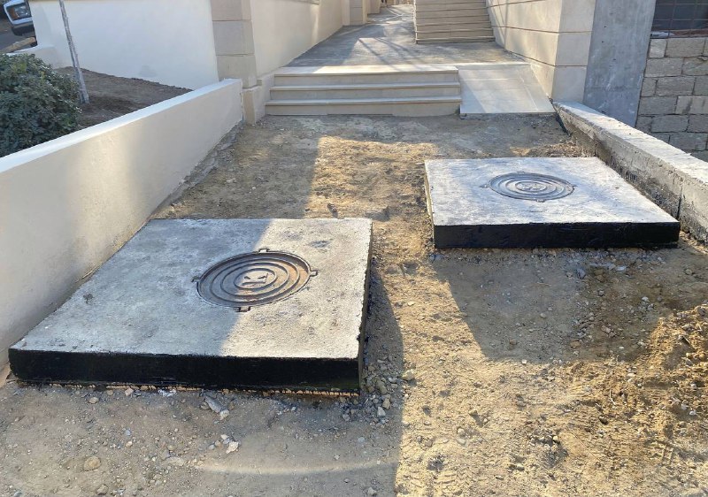 Drenaj və məişət-təsərrüfat kanalizasiya xətlərinin quyularının üzəri dəmir-beton tavalarla bağlanaraq diametri 60 sm olan çuqun qapaqlarla örtülmüş, tavanın kənarları bitum məhlulu ilə ikiqat izolyasiya olunmuşdur.