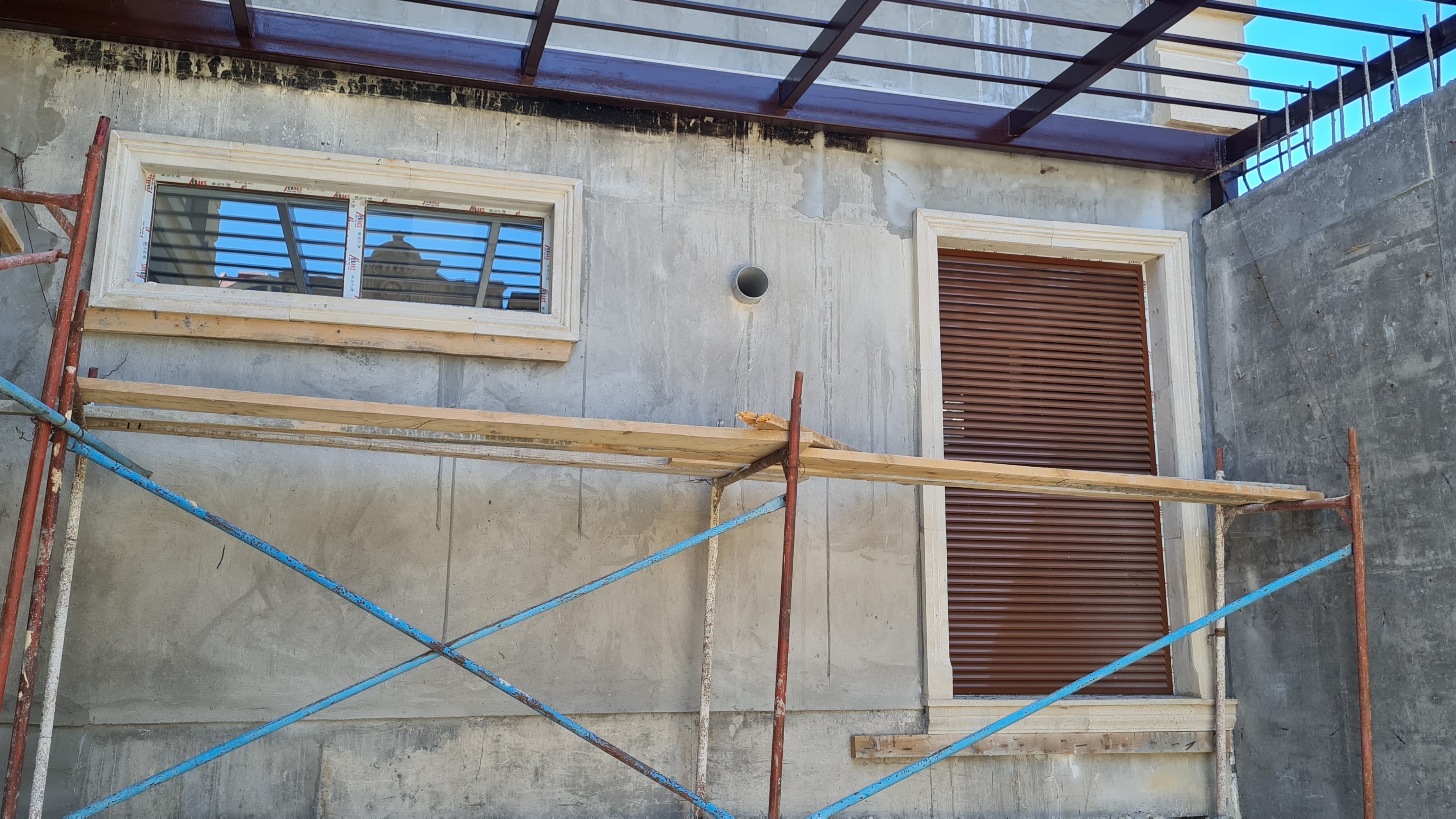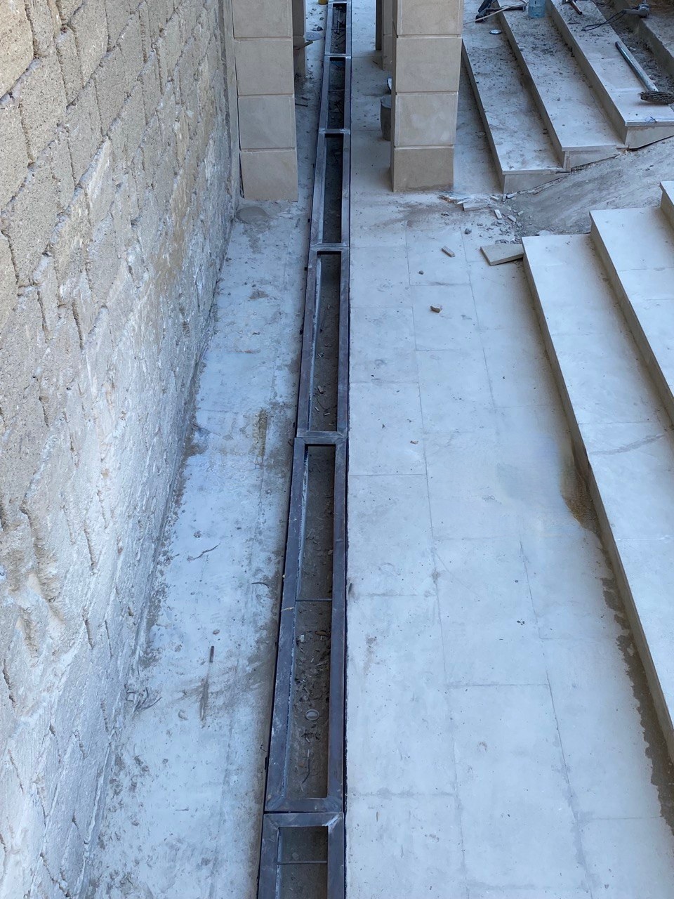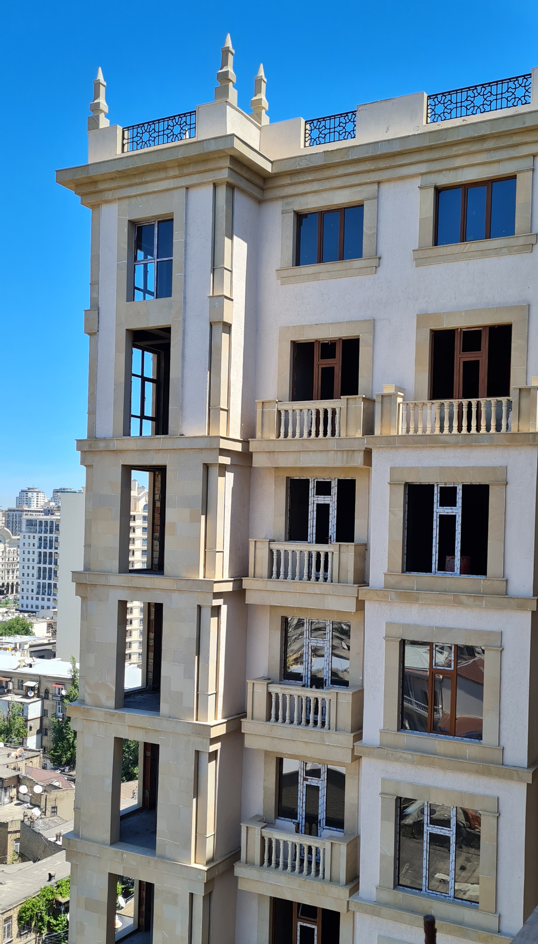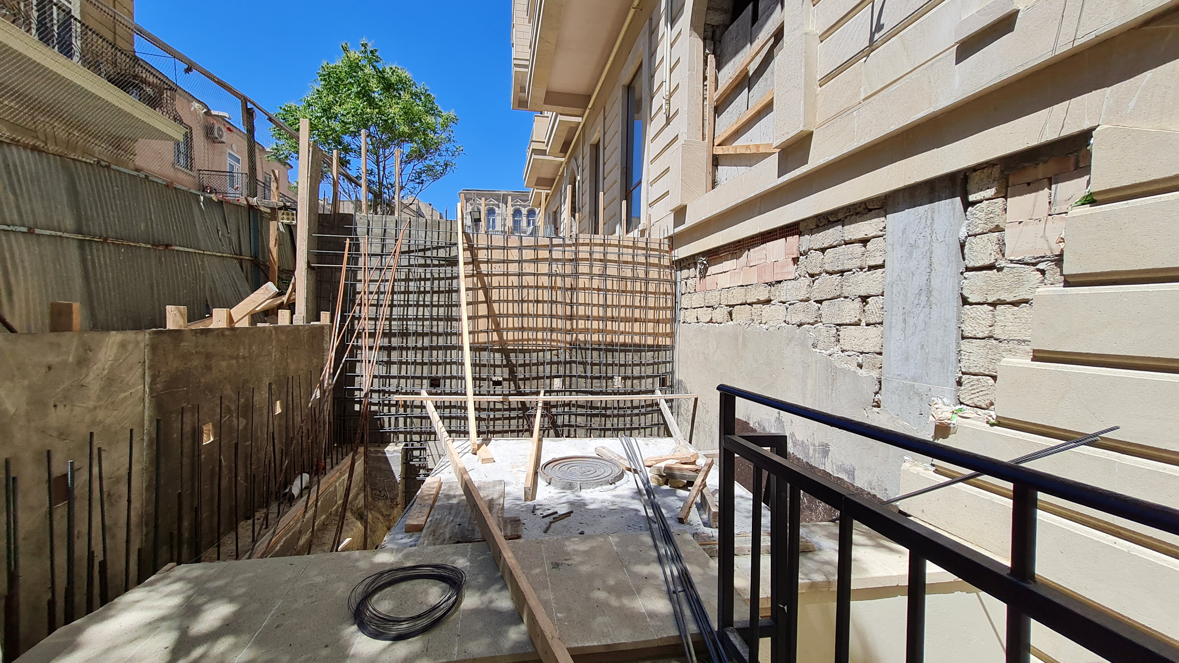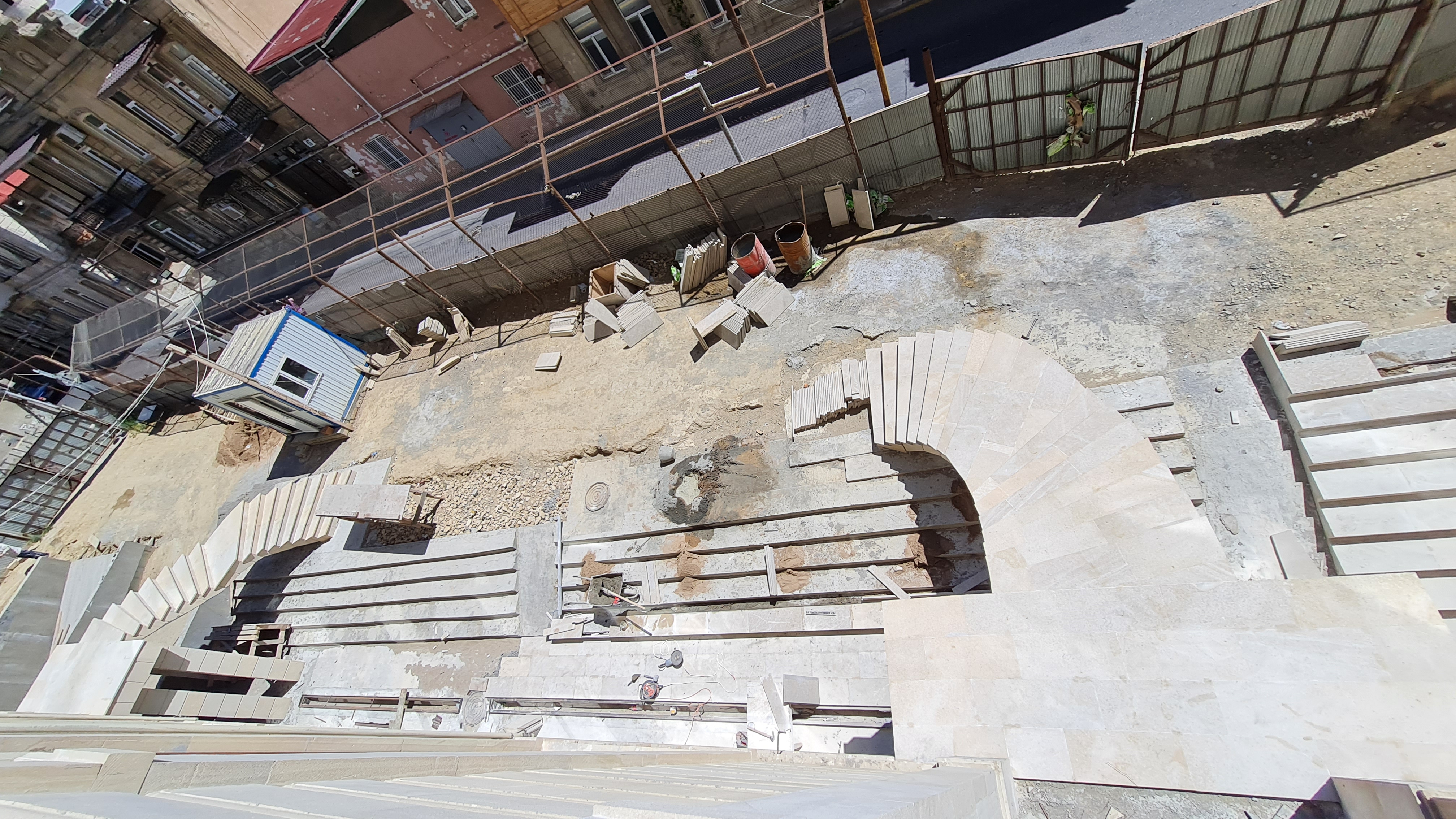 Zərgərpalan küçəsi tərəfdən qeyri-yaşayış sahəsinin 1-ci mərtəbəsinə qalxıb-enmək üçün inşa olunmuş 2 ədəd vintvari dəmir-beton pilləkəndən sayca ikincisinin də ağlay daşı ilə üzlənməsi işləri başa çatdırılmış və hal-hazırda -8.35 səviyyəsində yerləşən dəmir-beton pilləkənlərin ağlay daşı ilə üzlənməsi işləri davam etdirilir.