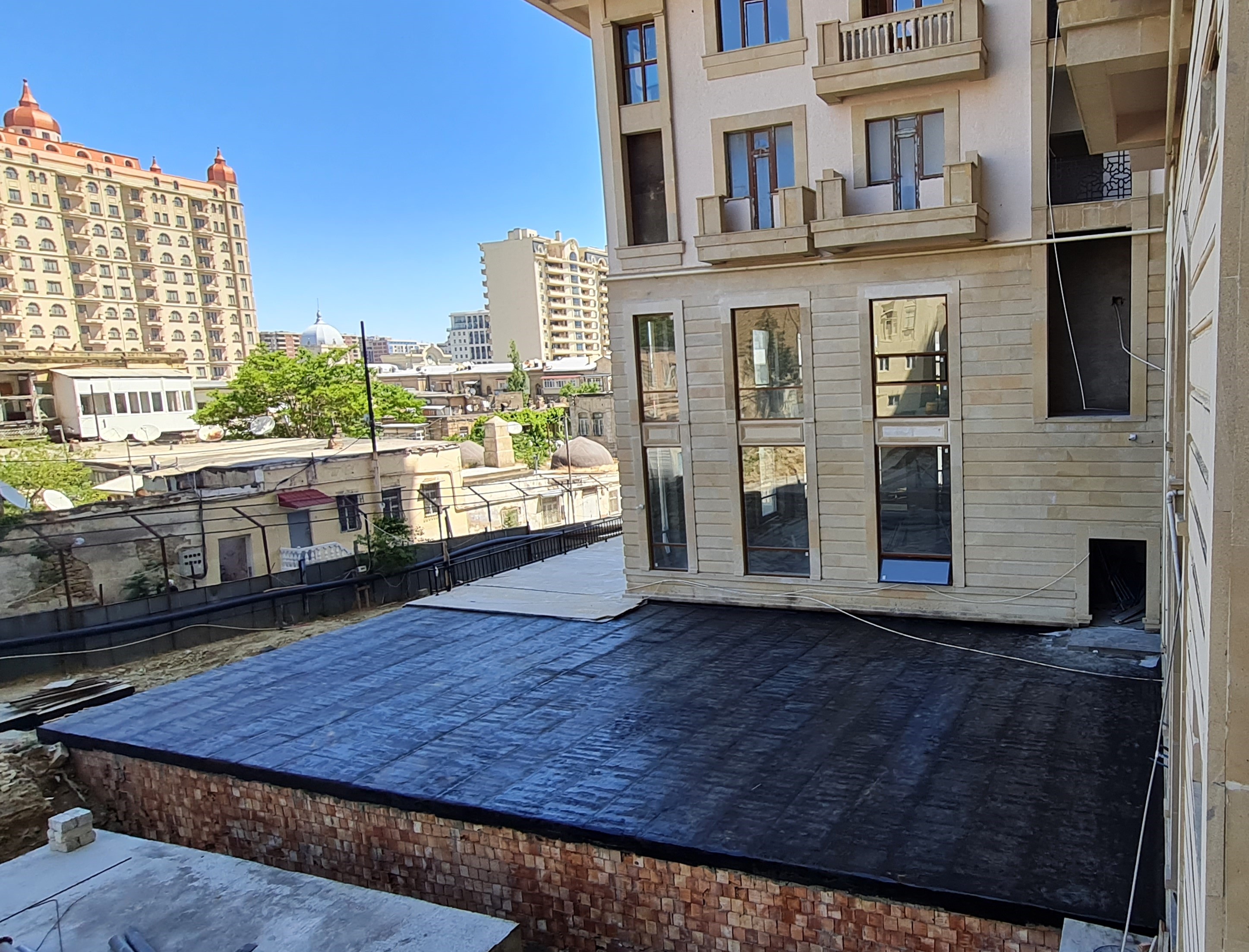 Qaraj mərtəbəsinin -5.35 səviyyəsində pandusun örtüyünün izolyasiyası işləri çərçivəsində örtük tavası ruberoidlə ikiqat hidroizolyasiya olunmuşdur.
