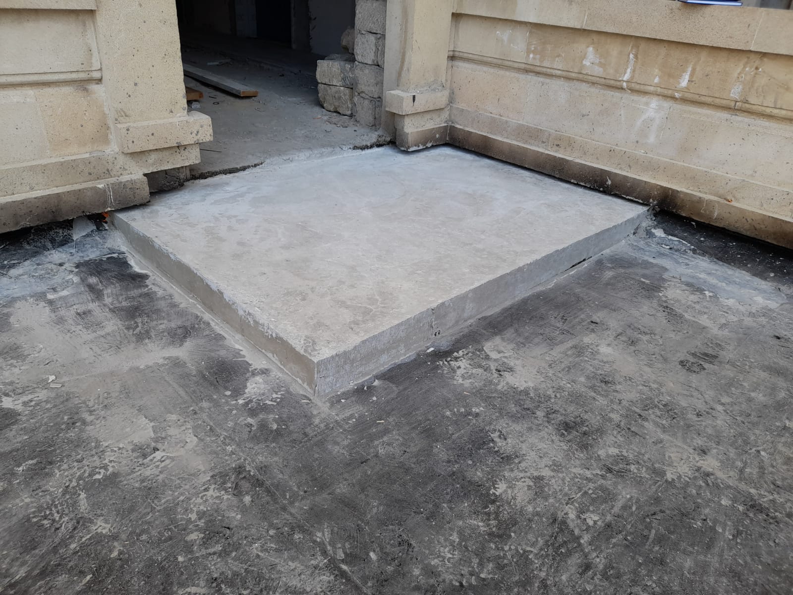 Binanın 3-cü blokunun giriş qapısı qarşısında 2.1x1.5x0.12(h)m ölçülərində, karkası polimer ⌀8 mm kompozit armaturdan toxunmuş meydança betonlanmışdır.