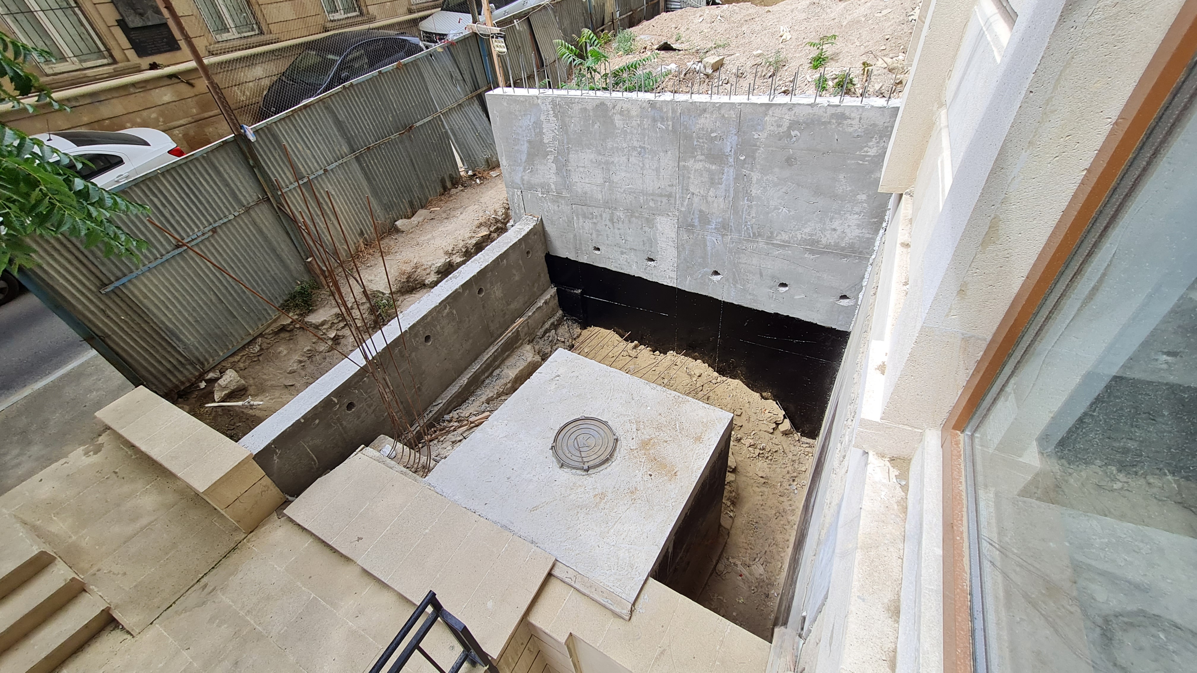 -8.35 səviyyəsində qarajın divar və tavanlarında boya hazırlıq işləri görülməkdədir.