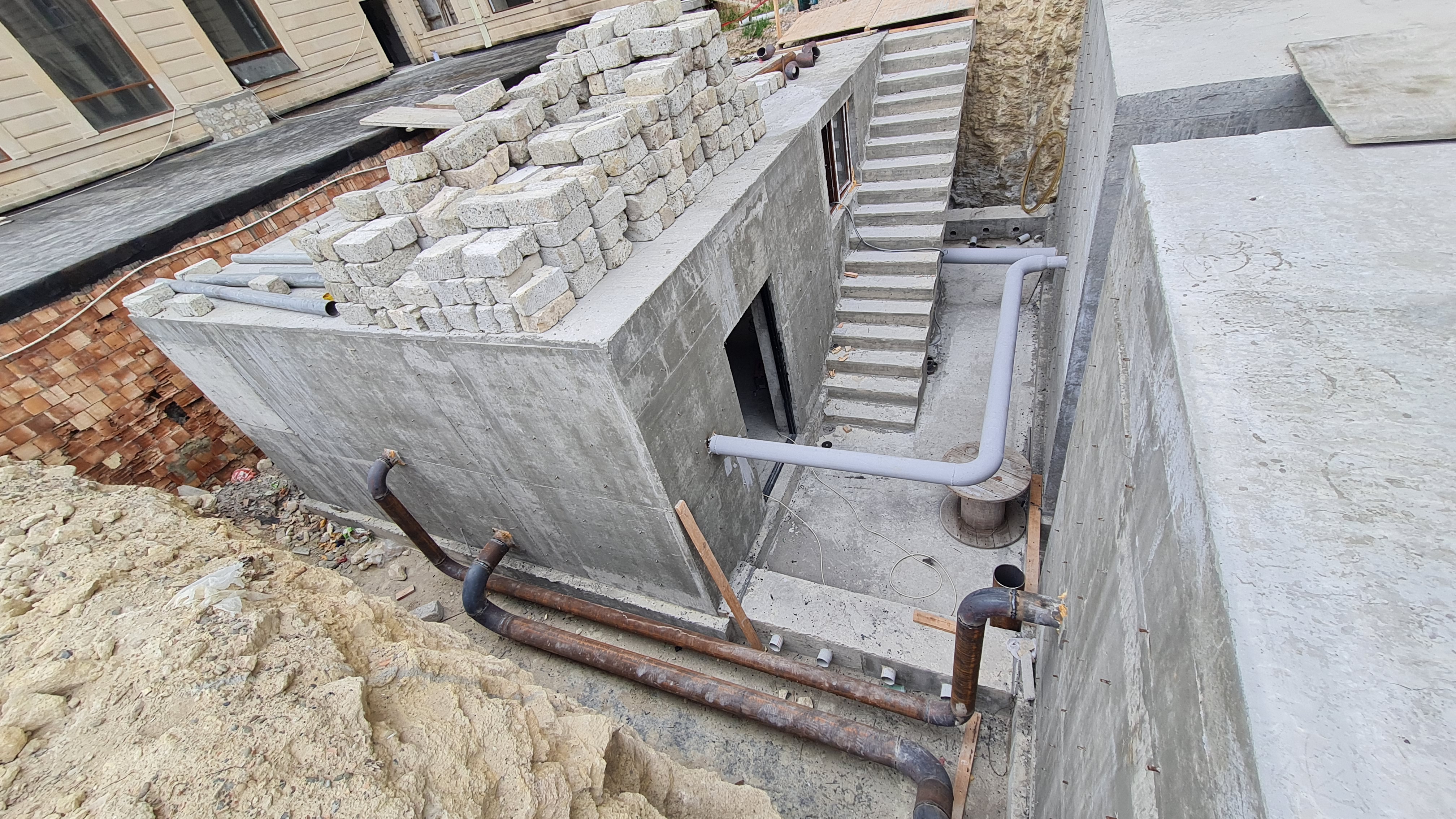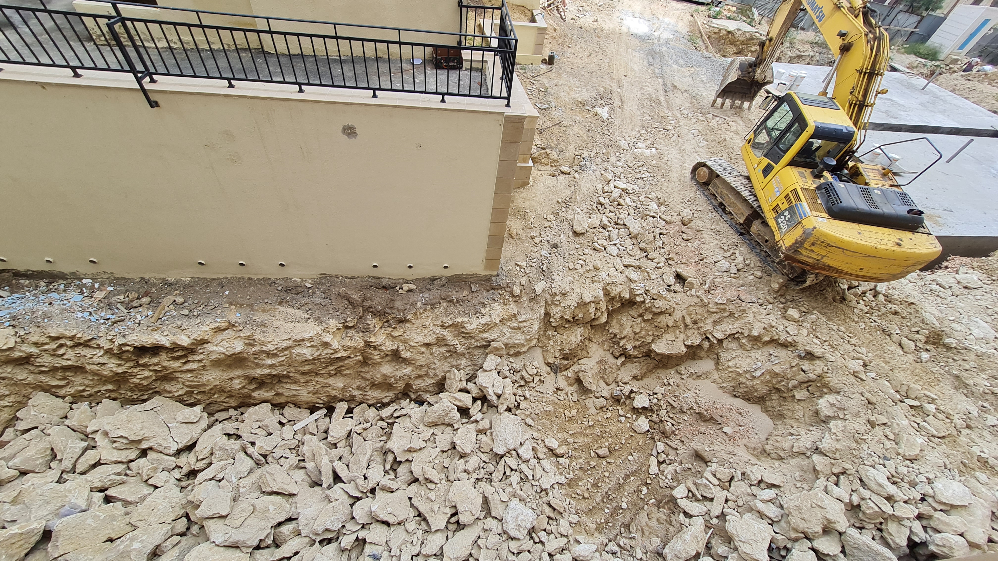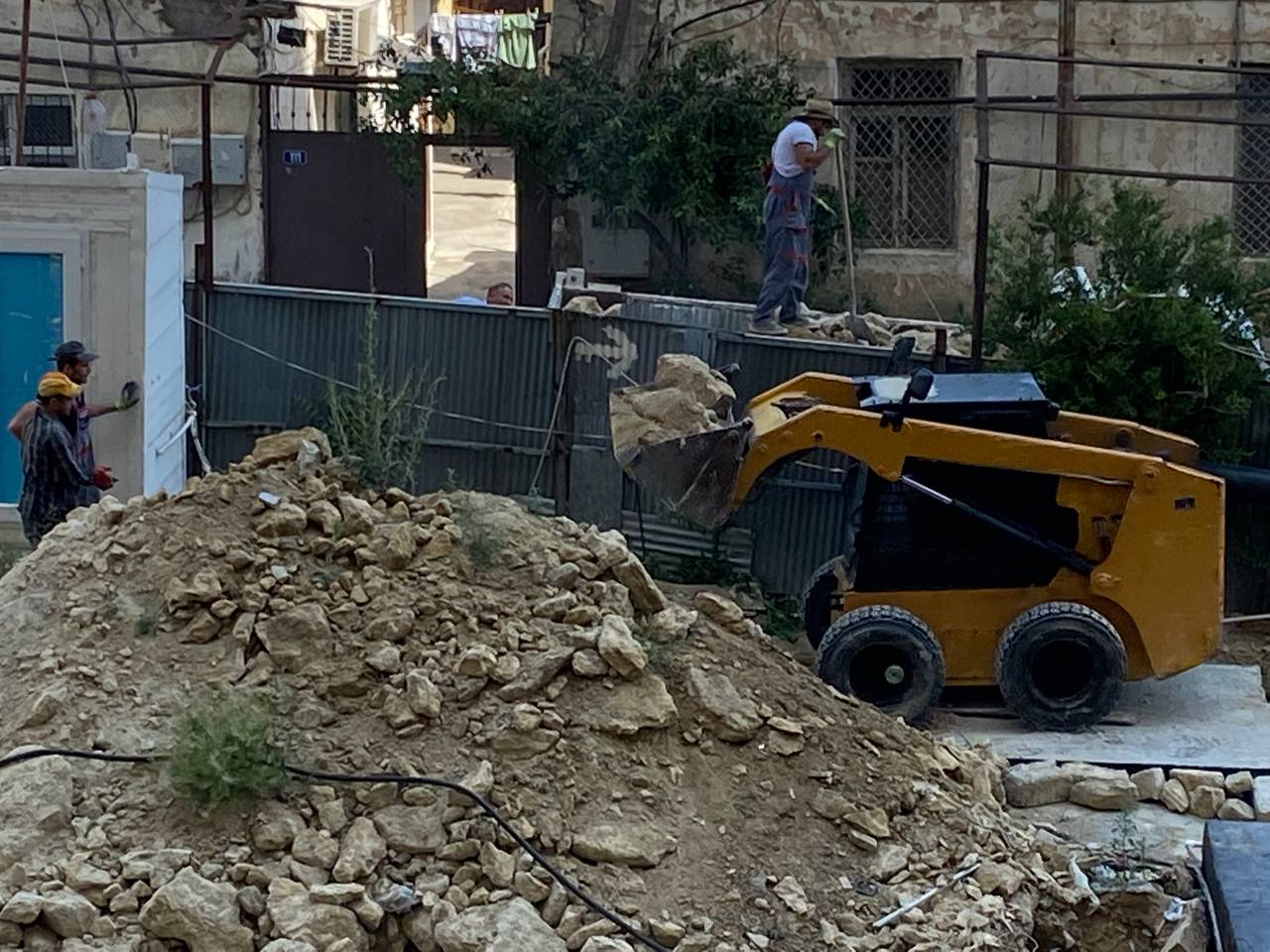 Birinci blokun qarşısında yeraltı qrunt sularının drenaj xəttinin davam etdirilməsi məqsədilə qaya qruntu xüsusi texnika ilə dağıdılıb yük maşınları ilə ərazidən kənarlaşdırılmışdır.