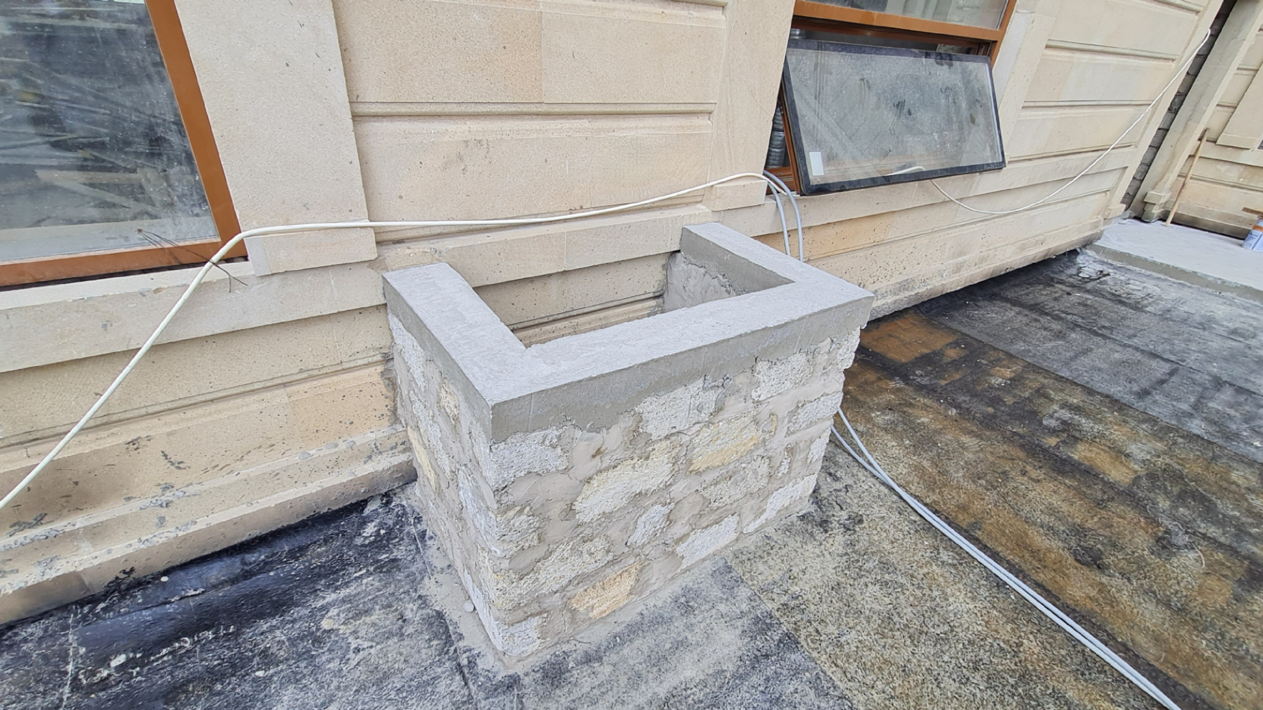 Binadaxili görülən işlərdən yaşayış binasında qaraj mərtəbəsinin havalandırılması məqsədi ilə pandus üzərində iç ölçüləri 0.60x0.95x0.95 (h) m olan mişar daşından havasovurma şaxtası inşa olunmuşdur.