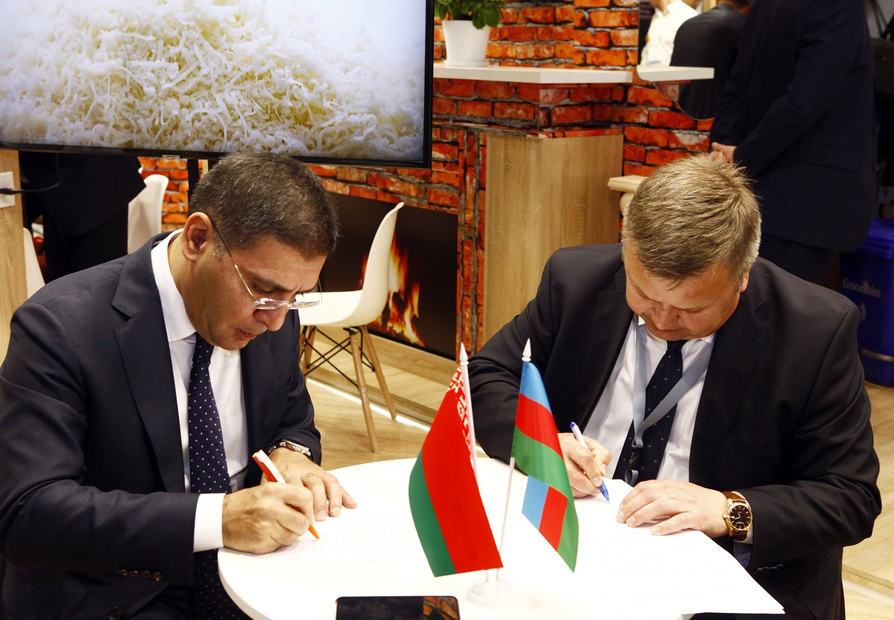 “WorldFood Azerbaijan” və “Caspian Agro” sərgilərində iştirak edən Belarus Respublikasının “Belqospişeprom” konserni ilə “Azərbaycan Sənaye Korporasiyası” ASC arasında qarşılıqlı əməkdaşlıq barəsində imzalanan niyyət protokolu da məhz iki ölkə arasında birgə tərəfdaşlıq baxımından əhəmiyyətlidir. Protokolu Belarus Respublikası tərəfindən konsernin sədri Aleksandr Zabello, Azərbaycan Respublikası tərəfindən Korporasiyanın baş direktoru Kamran Nəbizadə imzaladı. Birgə əməkdaşlıq niyyəti daşıyan bu sənəd çərçivəsində məqsəd “Azərtütün Aqrar Sənaye Kompleksi ” MMC ilə “Belqospişeprom” konserninin nəzdində fəaliyyət göstərən “Qrodnenskaya tabaçnaya fabrika “Neman” ASC arasında tütün məhsullarının ixracı üzrə müqavilənin imzalanması, 2019-cu ilin iyun-iyul aylarında qarşılıqlı səfərlərin təşkili, məhsul istehsalı sahəsində müəssisələr arasında təcrübə mübadiləsi, “Qrodnenskaya tabaçnaya fabrika “Neman” ASC-də tütün məmulatlarının istehsal prosesi ilə tanışlıq və birgə istehsal layihələrinin həyata keçirilməsi istiqamətində imkanların araşdırılması barəsində razılığın əldə olunmasıdır.
