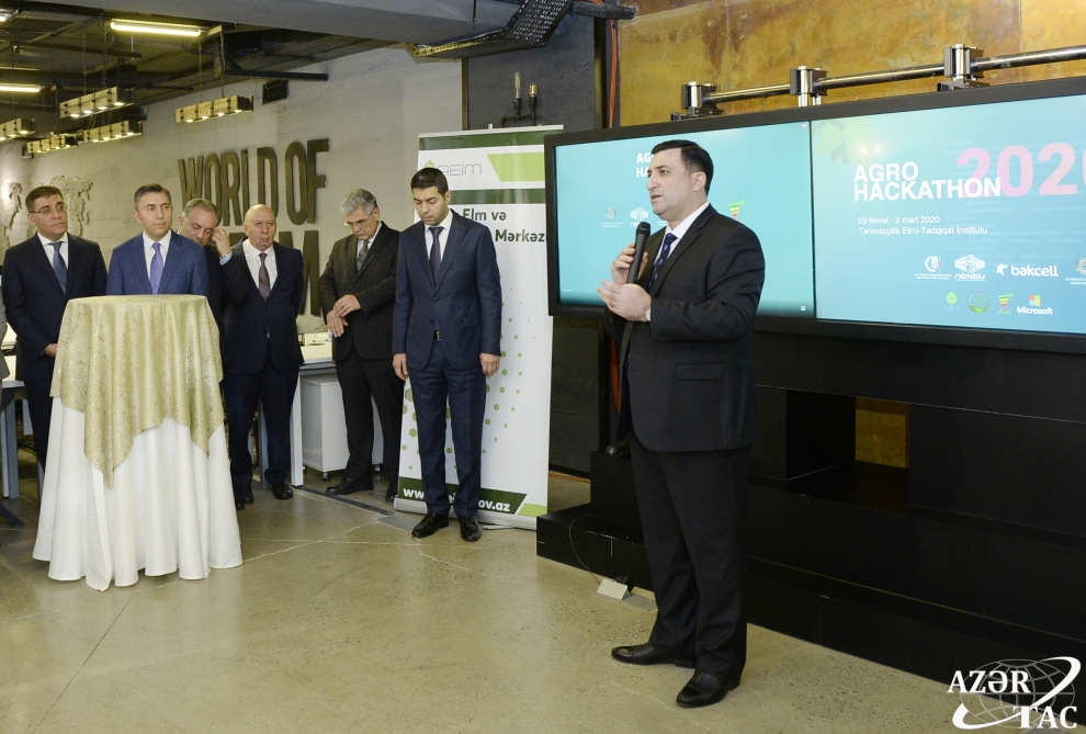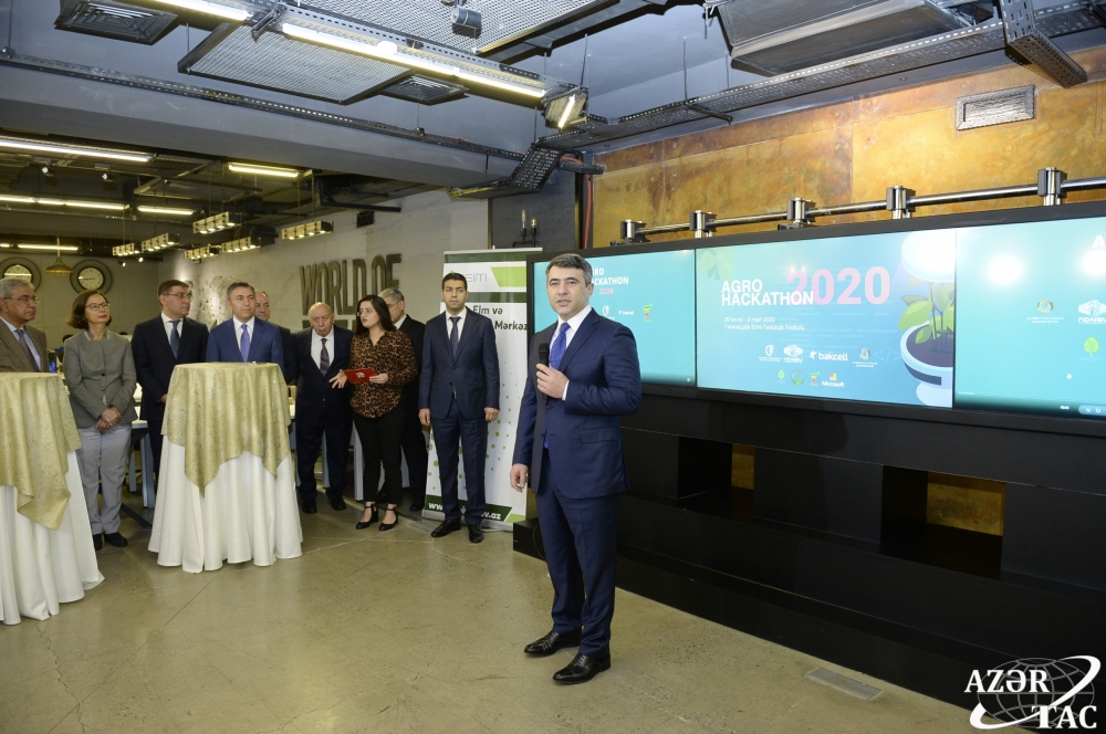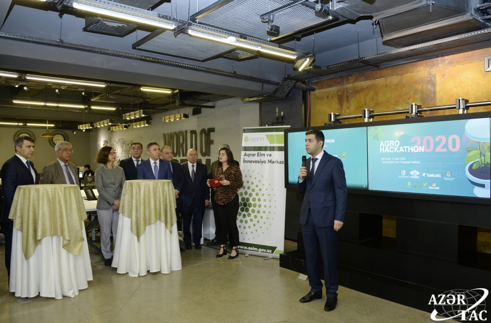 Bakıda Kənd Təsərrüfatı Nazirliyinin dəstəyi, Aqrar Elm və İnnovasiya Mərkəzi, Azərbaycan Dövlət Neft və Sənaye Universitetinin “Eazi Start” Startap və İnnovasiya Mərkəzi, Azərbaycan Sənaye Korporasiyasının təşkilatçılığı, “Bakcell” şirkətinin sponsorluğu ilə “AgroHackathon 2020” startap müsabiqəsinin yekun təqdimat mərasimi keçirilib. Tədbirdə Kənd Təsərrüfatı Nazirliyi Aparatının nümayəndələri, Azərbaycan Respublikasının Prezidenti yanında Vətəndaşlara Xidmət və Sosial İnnovasiyalar üzrə Dövlət Agentliyinin, dövlət qurumlarının rəhbərləri, ali təhsil müəssisələrinin rektorları, nazirliyin tabeli qurumlarının nümayəndələri, “Microsoft” şirkətinin Azərbaycan nümayəndəliyinin rəhbəri, eləcə də Dünya Bankının Azərbaycan nümayəndəliyinin rəhbəri iştirak ediblər.