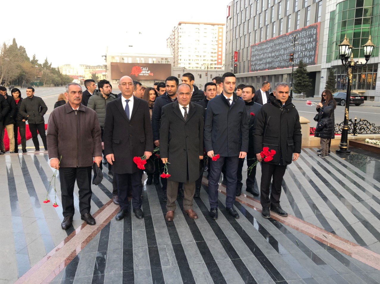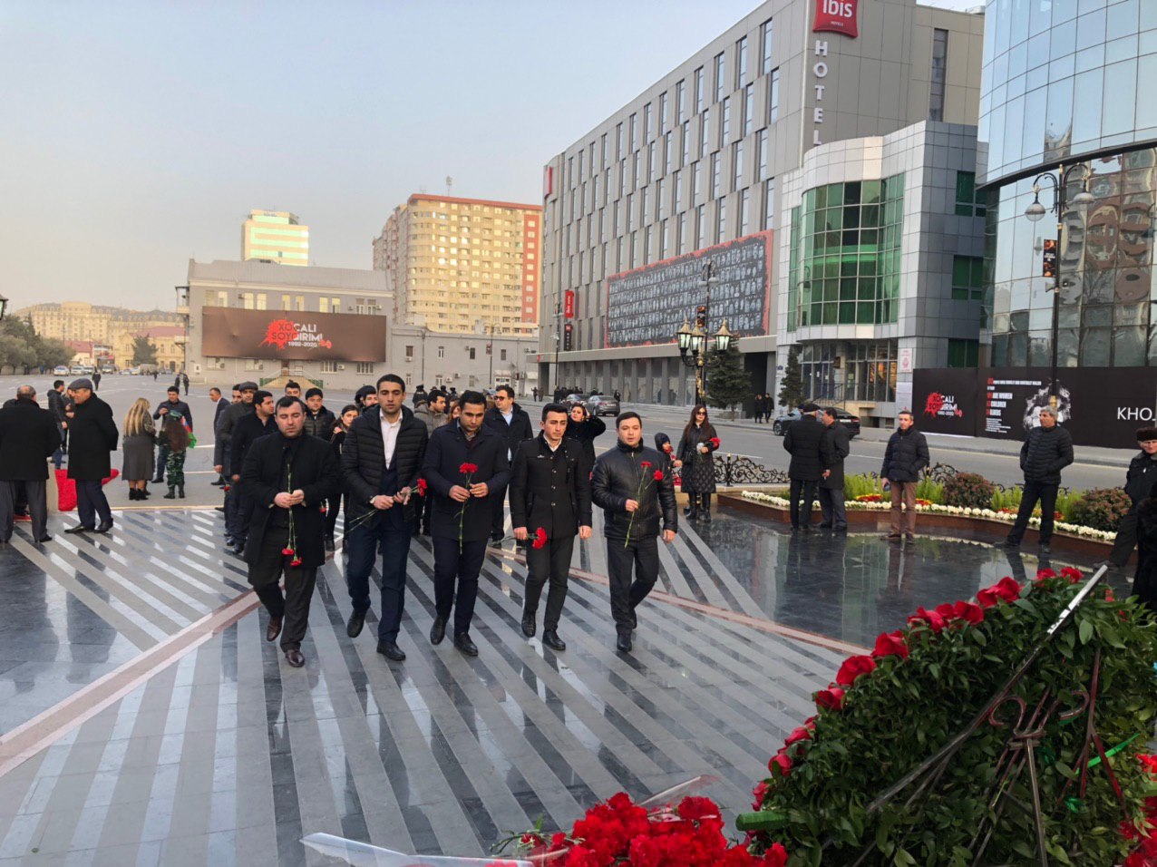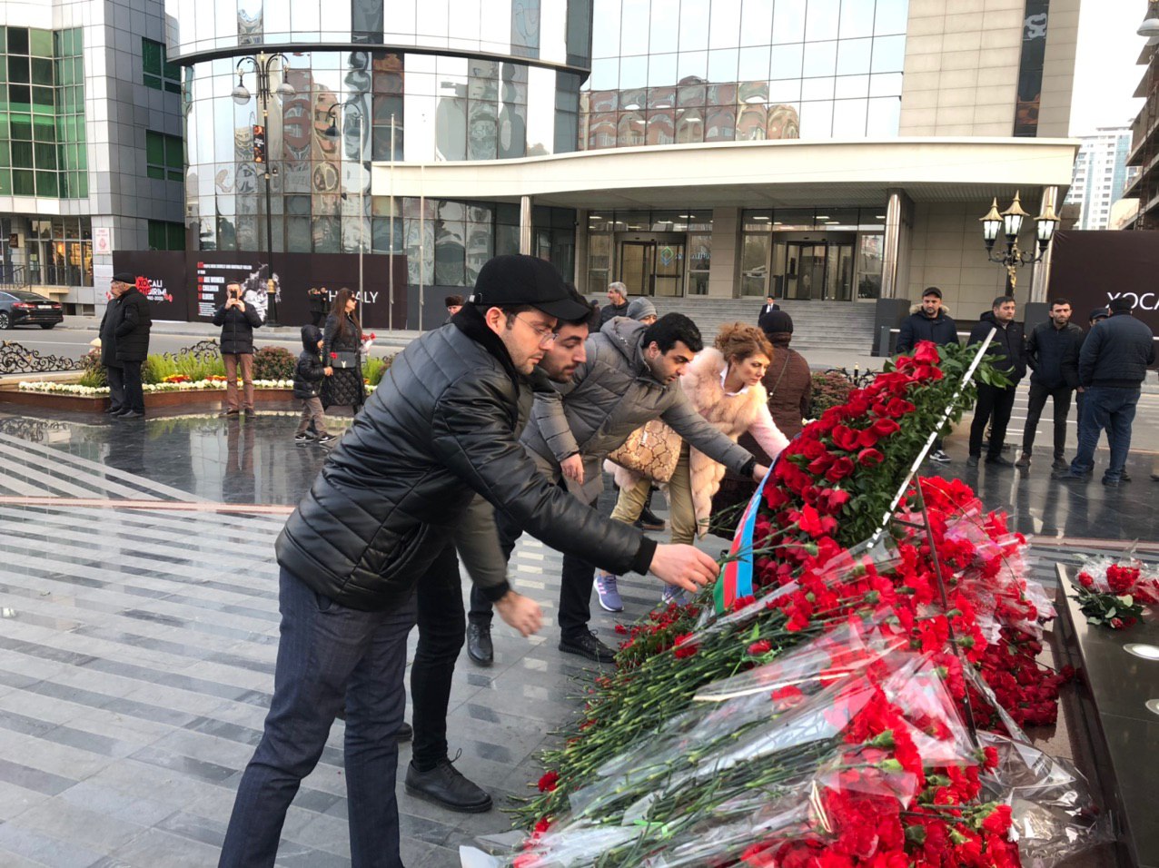 Xocalı soyqırımının 28-ci ildönümü ilə əlaqədar olaraq Xətai rayonunda faciə qurbanlarının xatirəsinə ucaldılmış abidənin önünə əklil qoyub, əziz xatirəsini ehtiramla yad ediblər.