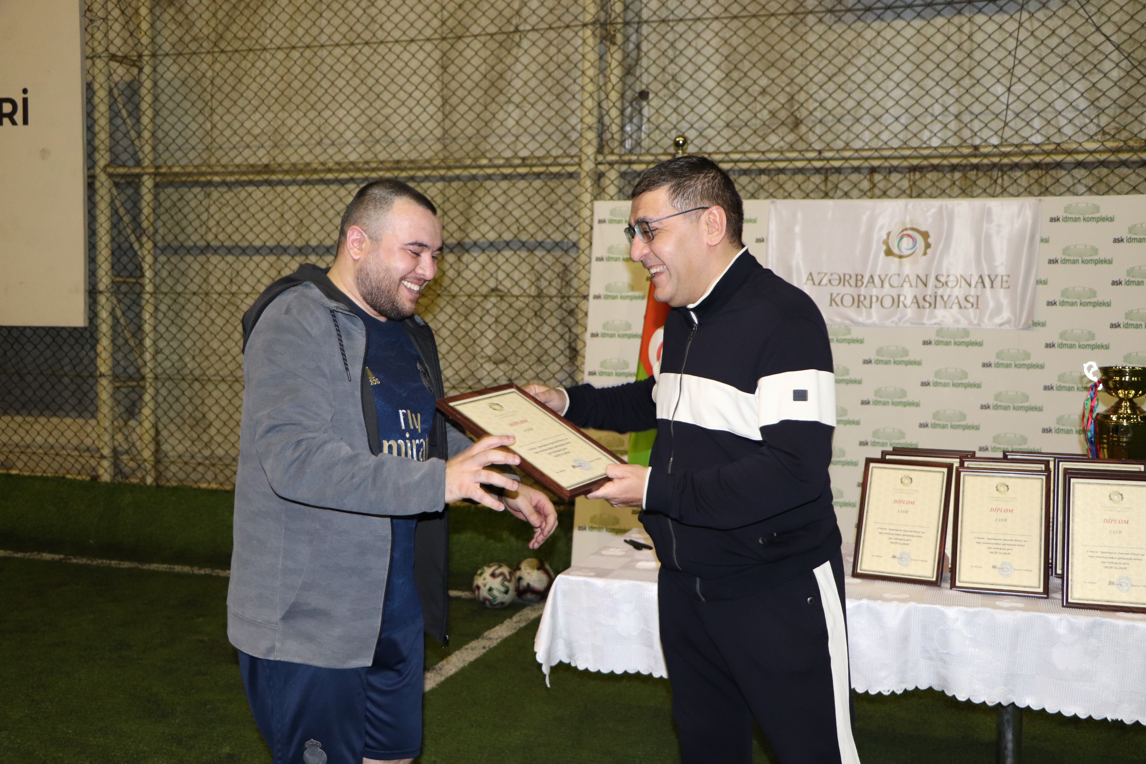 “Azərbaycan Sənaye Korporasiyası” ASC-nin mərkəzi aparatının əməkdaşları ilə Cəmiyyətin törəmə müəssisələrindən olan “Azəralüminium” MMC, “Azərpambıq ASK” MMC, “ASK Əmlak” MMC, “ASK Şüşə” MMC və “ASK Security” MMC-nin yığması arasında 2 Fevral - Azərbaycan Gəncləri Gününə həsr olunmuş mini futbol görüşü keçirilib. Sonda Cəmiyyətin Baş direktoru Kamran Nəbizadə yoldaşlıq görüşünün iştirakçılarını salamlayaraq, Azərbaycan Gəncləri Günü münasibətilə onları təbrik edib. Korporasiyanın rəsmisi bildirib ki, ilk dəfə təşkil olunan bu qəbildən görüşlər gələcəkdə ənənəyə çevrilərək, turnir şəklində keçiriləcək və artıq Cəmiyyətin hər bir törəmə müəssisəsi vahid komanda şəklində iştirak edəcəkdir. Mini futbol görüşünün iştirakçıları Korporasiyanın Baş direktoru Kamran Nəbizadə tərəfindən xatirə kuboku və diplomlarla təltif olunublar.